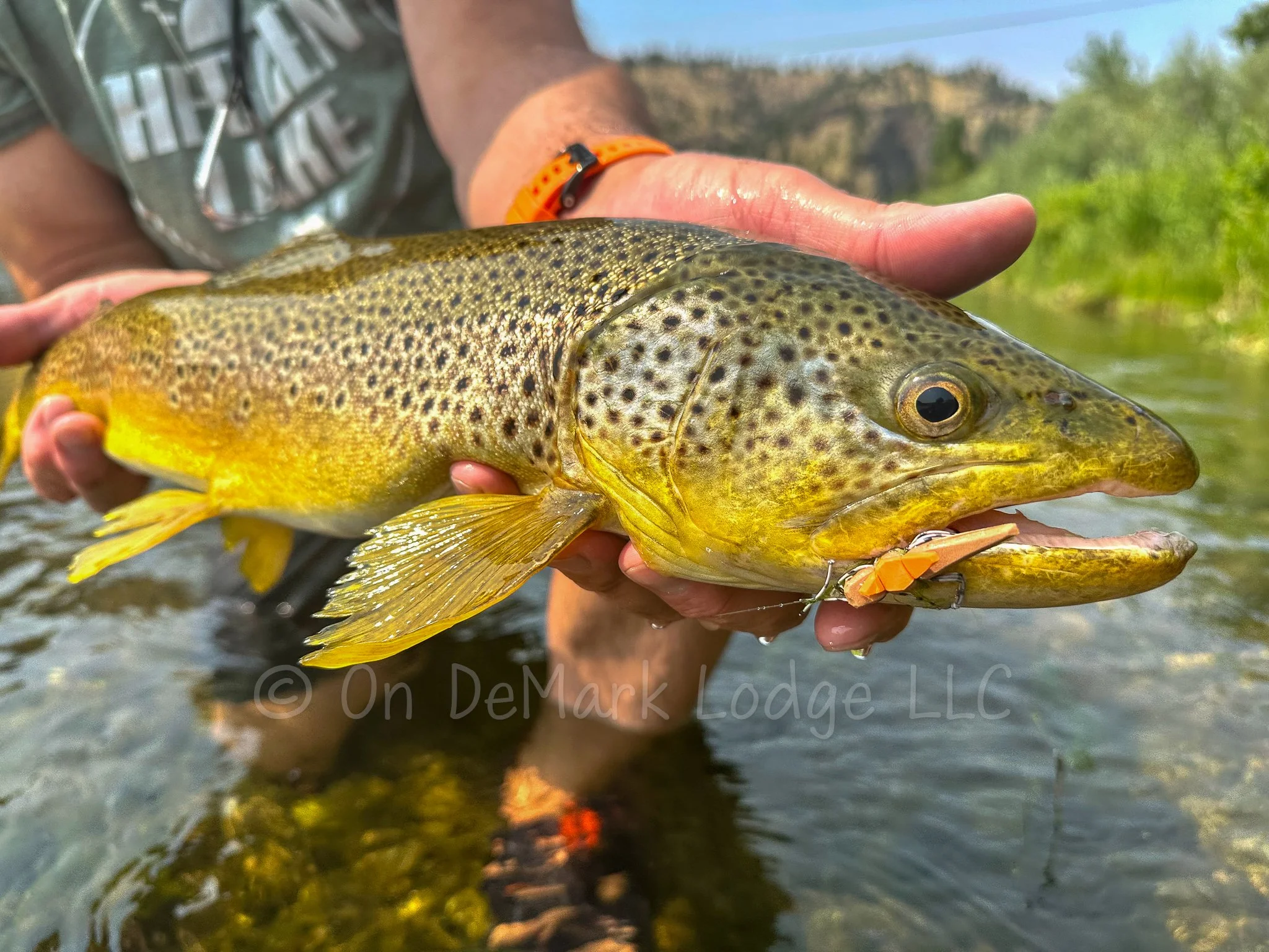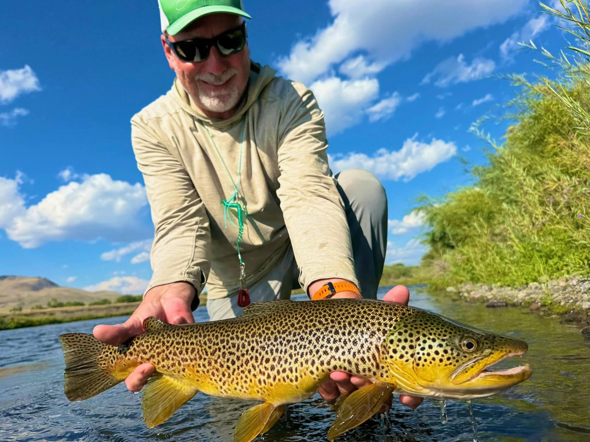 The fields and grasslands around the Missouri have a very healthy population of hoppers and trophy brown trout love to eat them. Warm, sunny, and windy are the right combination to get the fish keyed in on these large insects. Even though you can’t target specific fish, we get many of our biggest browns of the season on hopper patterns.